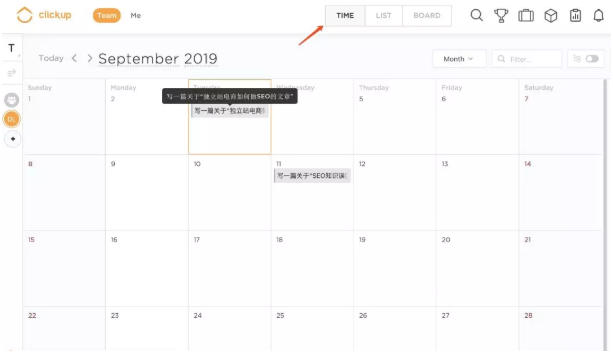 要設(shè)置一個(gè)完整的article calendar,我推薦使用click up的在線(xiàn)工具,可以在指定的日期里面寫(xiě)下自己需要撰寫(xiě)的文章內(nèi)容,這樣一來(lái)你就非常清晰你需要在哪一天完成什么工作了。