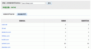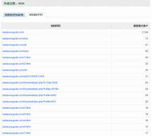 顯示的外鏈按域名聚合在一起。點擊域名會彈出窗口顯示這個域名下的鏈接來自什么頁面以及使用的錨文字。