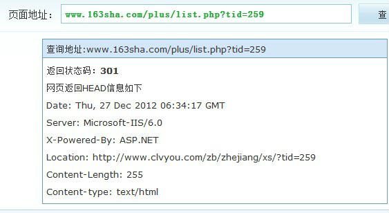 把這個(gè)http://www.163sha.com/plus/list.php?tid=259定向到:http://www.clvyou.com/zb/zhejiang/xs/