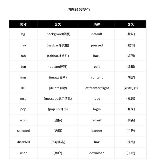 f、切圖規(guī)范命名。按照“功能_類型_名稱_狀態(tài)@倍數(shù)”,如導(dǎo)航欄是那個又一個手術(shù)圖標(biāo),它的命名形式可以為:nav_icon_sarch_default@2x.png(導(dǎo)航_圖標(biāo)_搜索_正常)