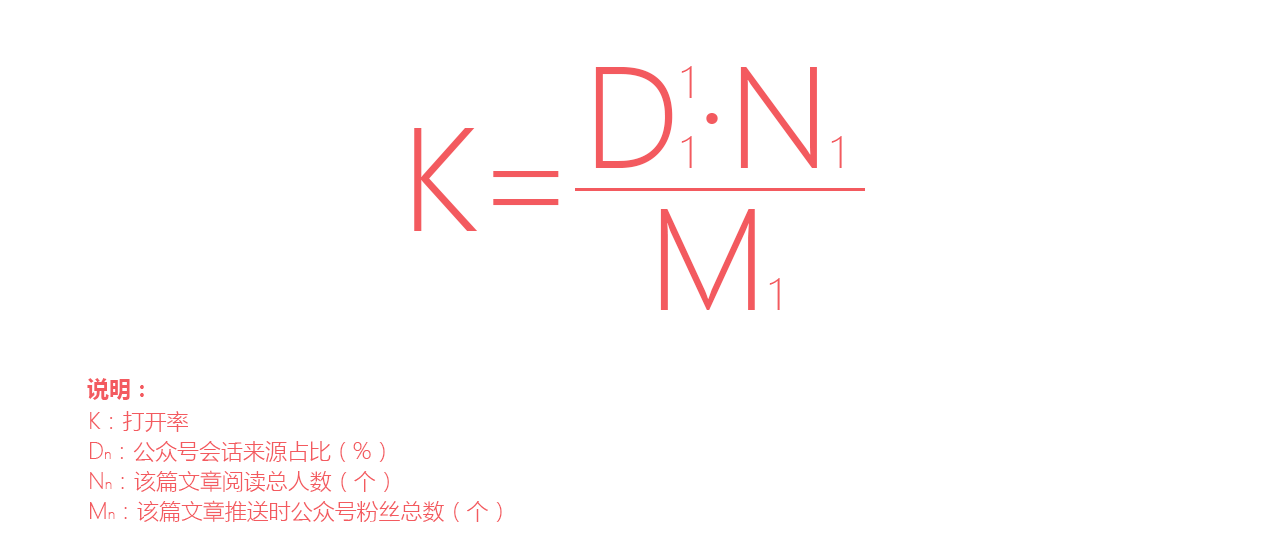 打開率一般指公眾號粉絲通過公眾號對話打開文章的比率,這里稱之為K指(打開率)。