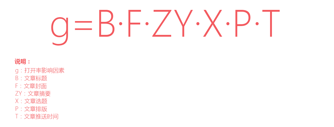 通過G值(文章閱讀數(shù))來計算K值(打開率),G值包含了五個影響因素G1、G2、G3、G4、G5(具體事例可以翻閱前文的關(guān)于G閱讀量的說明)。