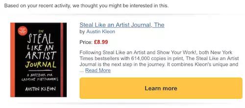 很多產(chǎn)品會根據(jù)用戶偏好來做自定義,從而將可選項根據(jù)用戶自身的偏好進行過濾。這個方法可謂是因為Amazon而發(fā)揚光大了,比如它的網(wǎng)頁和推送郵件都會根據(jù)消費歷史來給出商品推薦(圖3)。