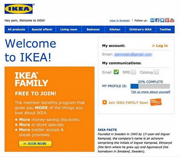 新增期是客戶接觸品牌的初期階段,個性化的問候、信息的完善、品牌的介紹能幫助品牌更好地了解客戶的個性化需求以便提升后續(xù)產品服務,同時也能幫助客戶了解品牌并提升用戶體驗。來自IKEA的歡迎郵件就是一個非常好的模仿對象! 我們來看看哪些部分值得我們學習: