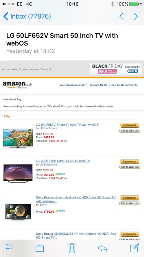 來自amazon的個性化推薦郵件
