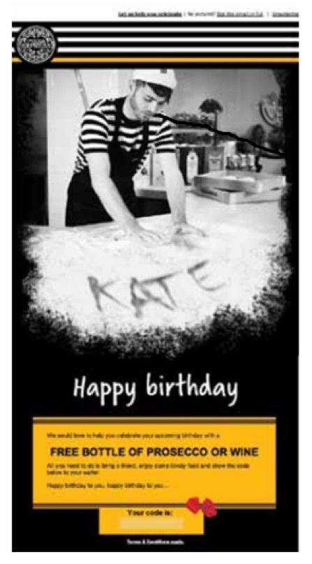 來自PIZZA EXPRESS的會員生日祝福郵件