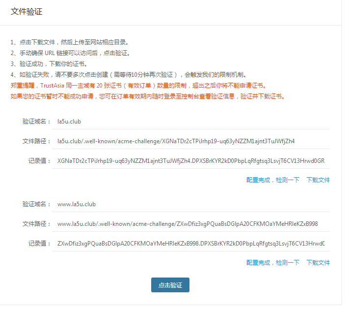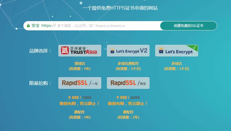 在網(wǎng)站中申請多域證書,let's Encrypt多域名申請,freessl.cn按步驟走就可以。亞洲誠信是一年的,親測~