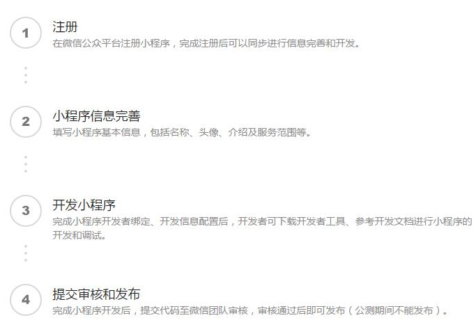 微信小程序采用類似于APP STORE審核管理制度,全部應(yīng)用需要通過(guò)微信審核才能發(fā)布,具體流程如下圖所示: