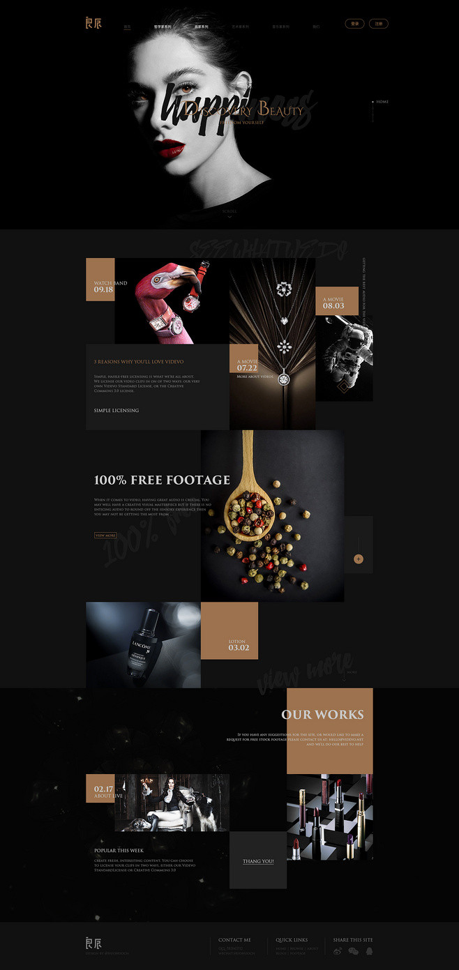 這個網(wǎng)頁設計。采用更深的顏色設計,這個設計有種神秘的感覺,而不是死寂沉沉,這就是高端在這里。