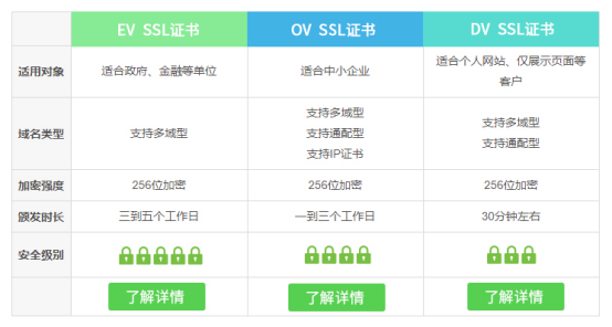 服務(wù)器證書(shū)一般有EV、OV、DV證書(shū)三種