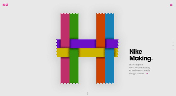 所有大小的原則都可以從大公司的截圖中看到,你首先注意到的是大的:作為他們標(biāo)志的風(fēng)格H。其次是“耐克制造”,它的大號(hào)字體和大膽的風(fēng)格創(chuàng)造了即時(shí)的重量。下面是直接在它下面的文本行,以較小的字體大小來(lái)寫,這樣就不會(huì)從關(guān)鍵的視覺效果中竊取注意力。如果你的眼睛仍然有興趣去閑逛,他們最終會(huì)注意到角落里的小圖標(biāo)和漢堡包菜單,或者右邊的導(dǎo)航欄。這里的層次結(jié)構(gòu)是有意義的。首先,五顏六色的大H吸引了你的眼球。不久之后,你將會(huì)為非正統(tǒng)的視覺尋找背景,這將立即被超鏈接的“耐克制造”的標(biāo)題和第二句。視覺層次結(jié)構(gòu)列出了用戶的路徑,而Fitts的法則簡(jiǎn)化了交互,使整個(gè)復(fù)制的部分都可以點(diǎn)擊,并且非常接近它的相關(guān)視覺。如果沒有考慮過(guò),你最終會(huì)點(diǎn)擊設(shè)計(jì)師想讓你去的地方。
