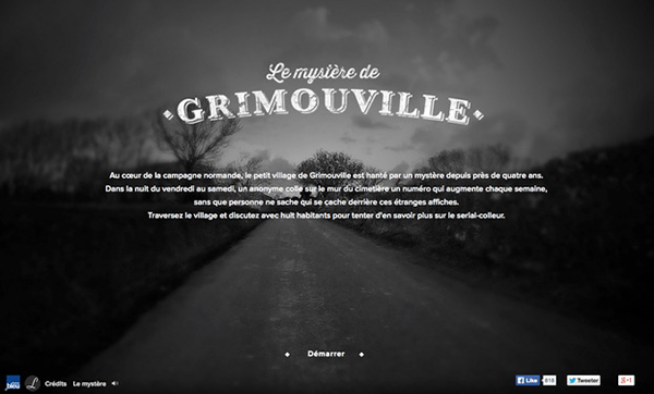 正如你可以在Le Mystere de Grimouville上看到的,標(biāo)題上的紋理不僅吸引了人們的注意,也給網(wǎng)站注入了一種古雅的氛圍和風(fēng)格。紋理,以及大小和位置,將標(biāo)題與不重要的正文分開。神秘的效果是好的,考慮到這個(gè)網(wǎng)站講述了一個(gè)神秘的故事,它困擾了諾曼底的140名居民四年多。