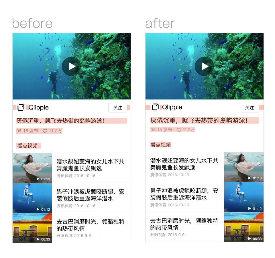 看似沒有什么差錯的信息布局(左圖),為什么始終差了一些什么?由于細節(jié)之處并非理解信息主次。最初設(shè)計稿追求絕對的均分,導致信息較散,沒有“組”的緊湊感。