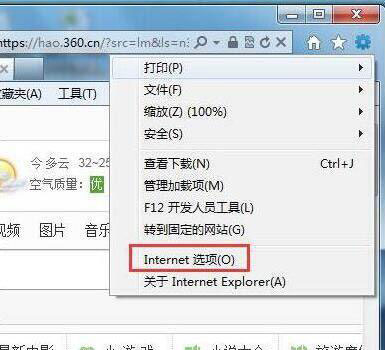 1、修改IE的Internet選項(xiàng)設(shè)置,打開IE瀏覽器,點(diǎn)擊“工具”進(jìn)入Internet選項(xiàng)。如圖所示: