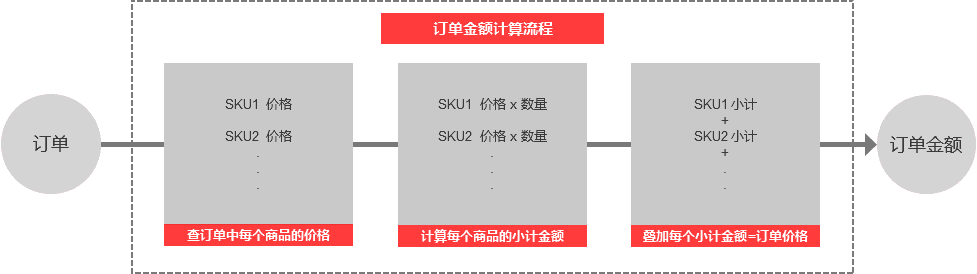 上圖展示了電商系統(tǒng)中,一筆訂單導入系統(tǒng)后,它的價格是如何計算出來的。為什么要說這個呢?