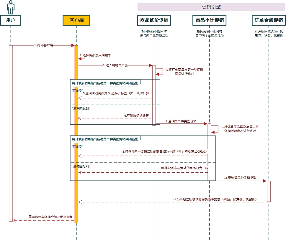 在我們知道這些之后再來(lái)看看關(guān)于促銷(xiāo)的時(shí)序圖,通過(guò)它可以幫助你完成任意形式的促銷(xiāo)產(chǎn)品設(shè)計(jì):