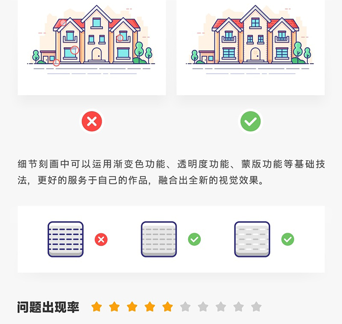 針對百圖記描邊風(fēng)的插畫主題練習(xí)活動,總結(jié)歸納出以下八種常見問題: