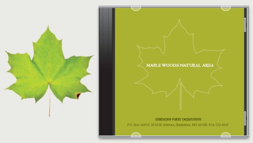突出葉子或名字。留意上圖與 CD 圖片的區(qū)別。葉子中間的文字在 CD 中是用了白色,所以名字很突出。如果我們想突出葉子,則需要降低名字的不透明度,而葉子則使用白色。