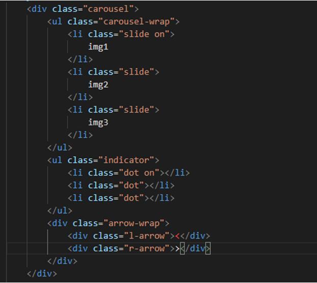 用一個div容器carousel包裹整個輪播圖,放置圖片或其他內(nèi)容的用carousel-wrap容器包裹,指示器用indicator容器,左右箭頭用arrow-wrap容器。