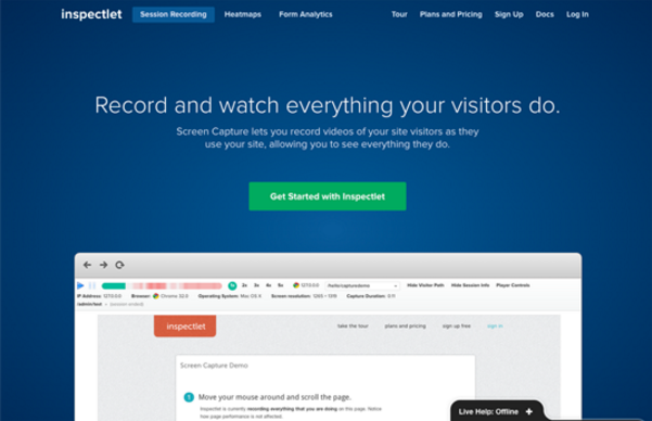 Inspectlet記錄視頻站點訪問者的使用情況,讓你看到他們所做的一切。你會看到你網(wǎng)站上的每一個鼠標移動,點擊鍵盤的動作。
