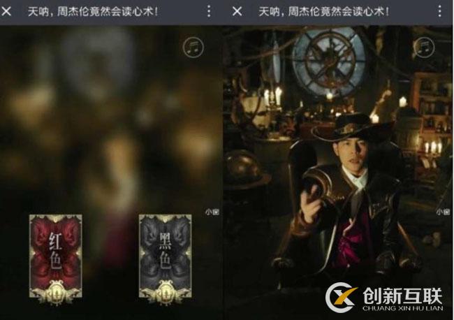 H5交互視頻:《天吶,周杰倫竟然會讀心術(shù)!》 這屬于“周年慶+視頻+測試答題”的交互視頻類型。電競男神周杰倫化身中單英雄“卡牌”,通過一副牌去猜測你心中所想之牌,前提是玩家需要根據(jù)給出的選項(xiàng)回答周董的三個問題; 而后檢測周董是否能夠看出你的內(nèi)心,最后在尾頁爆出英雄聯(lián)盟六周年狂歡盛典的時間和地點(diǎn)。