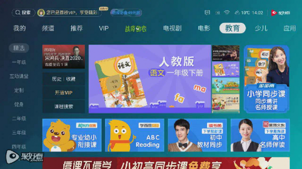 線上課堂的競(jìng)爭(zhēng),不僅僅集中在短視頻平臺(tái)。為響應(yīng)國(guó)家“停學(xué)不停課”的號(hào)召,海信聚好看向全國(guó)4000萬用戶免費(fèi)開通教育VIP,開放在線教學(xué)資源,全國(guó)用戶開通小初高12個(gè)年級(jí)全部課程免費(fèi)學(xué)。海信官方數(shù)據(jù)顯示,高峰一天有超過245萬孩子通過大屏在線學(xué)習(xí)。