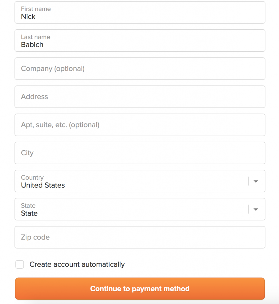 注冊(cè)選項(xiàng)可能會(huì)被客戶結(jié)帳選項(xiàng)安全地替換。在用戶通過(guò)結(jié)帳時(shí)緩慢收集數(shù)據(jù),購(gòu)買后要求輸入優(yōu)惠券代碼的密碼,如“Smashing Magazine”。