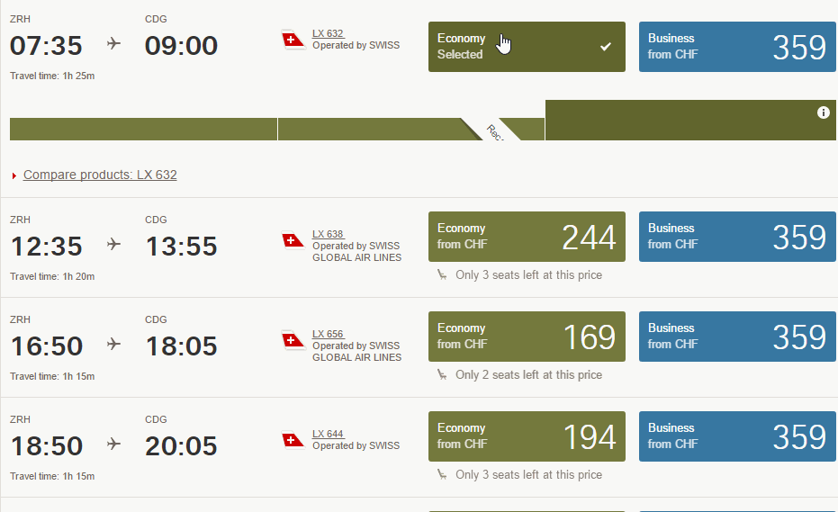 Swiss Air的應(yīng)用程序就是一個(gè)常見方法的例子。在票價(jià)表中,每排成為折疊的手風(fēng)琴,如果需要可以打開。
