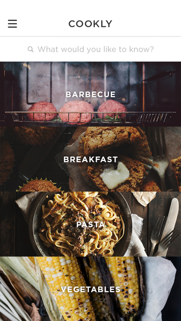 Cookly使用全屏菜單,圖片設(shè)置正確的心情,并刺激用戶與應(yīng)用程序互動(dòng)。(圖片:Patrick Wong)