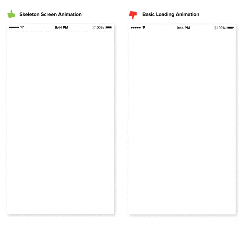 讓人們知道,使用進(jìn)度指標(biāo)會(huì)有一段時(shí)間。話雖如此,雖然進(jìn)度指標(biāo)的意圖很好,但結(jié)果可能是壞的。正如 Luke Wroblewski mentions,“進(jìn)度指標(biāo)的定義是要注意有人需要等待的事實(shí)。就像看時(shí)鐘一樣——當(dāng)你做的時(shí)候,時(shí)間似乎變慢了。”進(jìn)度指標(biāo)有一個(gè)很好的選擇:屏幕架構(gòu)。這些容器本質(zhì)上是頁(yè)面的臨時(shí)空白版本,逐漸加載信息。而不是顯示一個(gè)加載指示器,使用屏幕架構(gòu)來(lái)專注于實(shí)際進(jìn)度,并創(chuàng)造對(duì)將來(lái)的預(yù)期。這意味著事情正在發(fā)生,隨著信息逐漸顯示在屏幕上,人們看到應(yīng)用程序在等待時(shí)正在進(jìn)行中。
