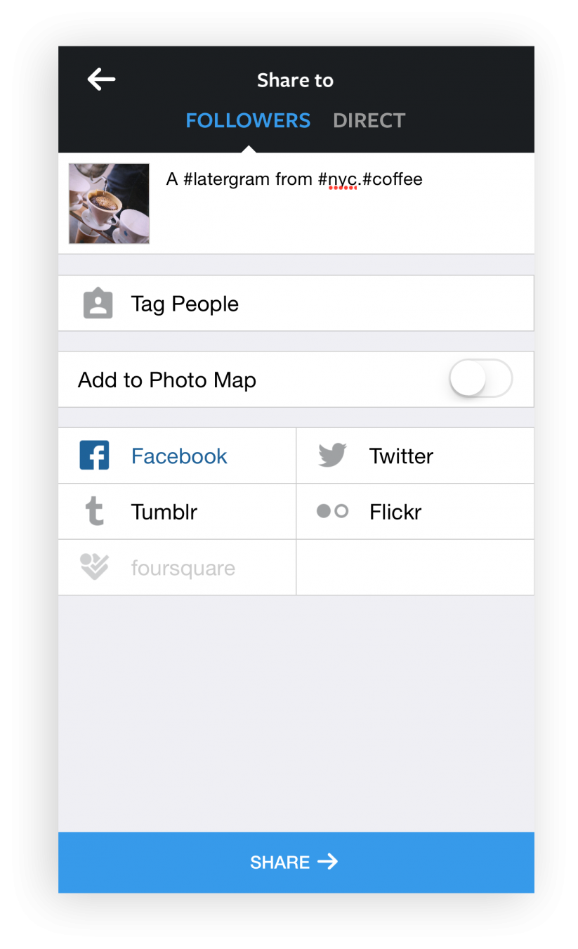 Instagram邀請(qǐng)用戶在后臺(tái)添加標(biāo)簽作為圖片上傳。