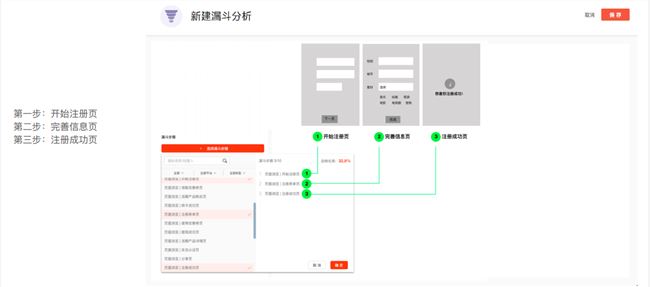 通常用戶都需要經(jīng)過“開始注冊- 完善信息 - 注冊成功”,才能完成注冊,因此,我們可以選擇頁面瀏覽量指標,作為漏斗的步驟: