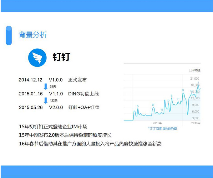 比如競品發(fā)展背景,競品的知名度飆升/下降指數,或者什么時間段增加了一個什么樣的功能。