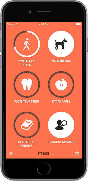 在手機(jī)界面上使用單一的黑色和白色是吸引視線的好方法。Streaks 的APP用高飽和度的顏色、生動(dòng)的圖標(biāo)和簡(jiǎn)單分類組合的方式,讓用戶更容易理解產(chǎn)品,提高參與度。