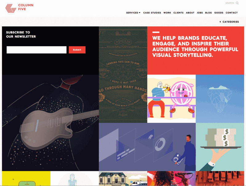 純色調(diào)的設(shè)計(jì)讓頁(yè)面更簡(jiǎn)潔,是最z流行的色彩運(yùn)用方法之一。純色調(diào)的頁(yè)面一般是高飽和度顏色和淺色的混合搭配。純色的使用帶來(lái)的強(qiáng)烈視覺(jué)沖擊,配上引人注目的排版,這種配色的設(shè)計(jì)能夠給人帶來(lái)真正令人難忘的體驗(yàn)。sydneystockhom 的設(shè)計(jì)采用大膽的顏色,用很簡(jiǎn)單的方式讓人印象深刻。