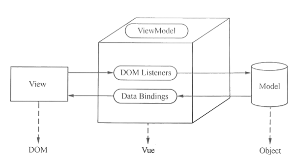 從上圖中可以看出,MVVM主要包含3個(gè)部分,分別是Model、View 和ViewModel。Model指的是數(shù)據(jù)部分,主要負(fù)責(zé)業(yè)務(wù)數(shù)據(jù); View指的是視圖部分,即DOM元素,負(fù)責(zé)視圖的處理。ViewModel是連接視圖與數(shù)據(jù)的數(shù)據(jù)模型,負(fù)責(zé)監(jiān)聽Model或者View的修改。