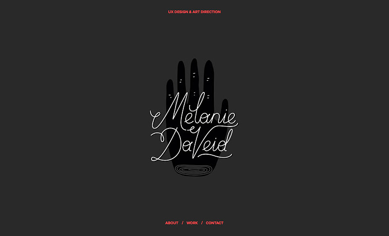 Melanie DaVeid做了一個優(yōu)秀的示范,通過一個簡單的視覺呈現(xiàn),使你對它的其他工作感興趣。通過動畫,顏色和特殊的文字組合,在首屏就為用戶創(chuàng)造了獨特的感覺。