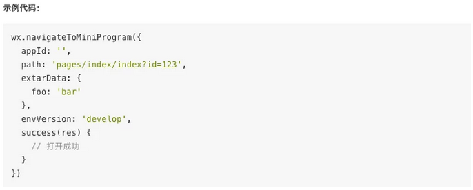 如果有需要,開(kāi)發(fā)者可以詳細(xì)參考《小程序開(kāi)發(fā)文檔》。需要指明的是,在開(kāi)發(fā)者工具上調(diào)用此 API 并不會(huì)真實(shí)的跳轉(zhuǎn)到另外的小程序,但是開(kāi)發(fā)者工具會(huì)校驗(yàn)本次調(diào)用跳轉(zhuǎn)是否成功。