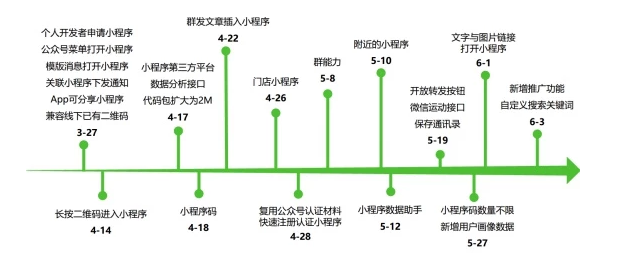 自小程序上線(xiàn)以來(lái),釋放了哪些功能,從下圖中便可以直觀的看到:
