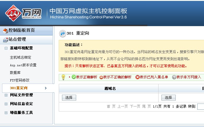 標(biāo)題名稱:萬(wàn)網(wǎng)M3型Windows虛擬主機(jī)如何利用后臺(tái)控制面板進(jìn)行301重定向