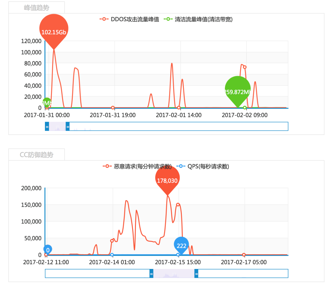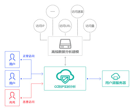 有效抵御HTTP洪水攻擊,慢速攻擊,連接耗盡等常見CC攻擊,通過模式識別、反向驗證、訪問異常IP封堵等多種手段,精確攔截惡意訪問,抵御各類應用層攻擊。通過大數(shù)據(jù)技術,建立正常業(yè)務的訪問模型和攻擊時的防護模型以及IP信譽庫,在防御攻擊的同時盡可能的降低誤攔,保障用戶業(yè)務不受攻擊影響。