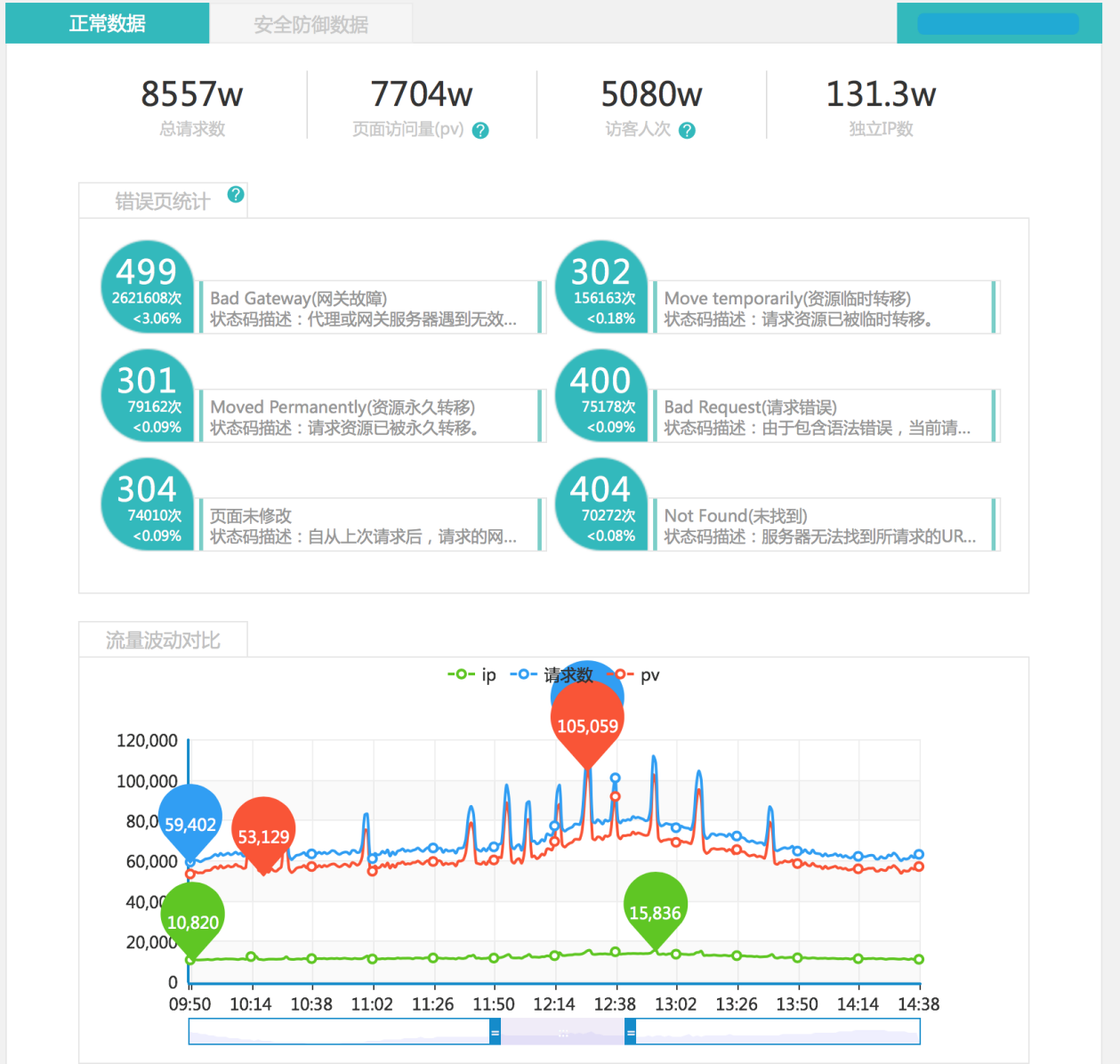 對正常訪問的數(shù)據(jù)以及攻擊數(shù)據(jù)提供豐富的報表展示,主要的數(shù)據(jù)都是實時統(tǒng)計,讓用戶可以及時的從各個方位了解業(yè)務的運作情況以及攻擊情況。