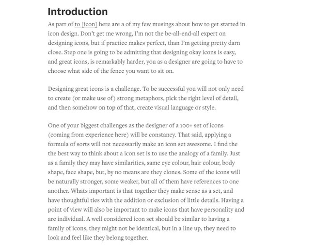 處理段落間距可能會非常棘手,但它是一個非常重要的課題,特別是對文字為主的網(wǎng)站來說。底部段落邊距,應(yīng)該比文本的常規(guī)行大得多。底部段邊距應(yīng)該足夠大,這樣就可以直觀地確定一個段落已經(jīng)結(jié)束。