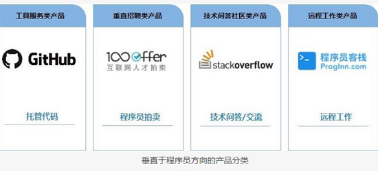 但垂直類產(chǎn)品也是功能細(xì)分的,目前市場上垂直于程序員方向做得最好的產(chǎn)品有四類:一是工具服務(wù)類產(chǎn)品,比如Github,它的切入點(diǎn)就是為程序員托管代碼;二是垂直招聘類產(chǎn)品,比如100Offer,它的切入點(diǎn)就是提供程序員拍賣;三是問答社區(qū)類產(chǎn)品,比如Stackoverflow,它的切入點(diǎn)是為程序員提供一個深度討論的交流平臺;四是共享經(jīng)濟(jì)模式下的遠(yuǎn)程工作類產(chǎn)品,比如程序員客棧,它的切入點(diǎn)是為Freelancer提供遠(yuǎn)程工作機(jī)會。