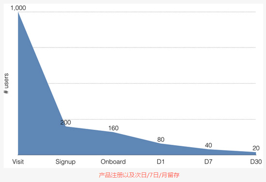 30天后,只有20個用戶(1000個用戶中只有20個)成為了日常活躍用戶(Daily Active Users)