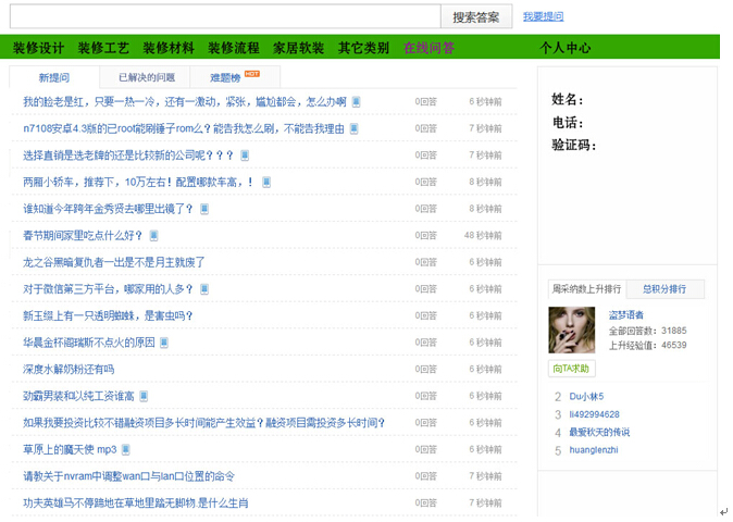8、裝修百科:首頁分類列表展示:裝修設計,裝修工藝,裝修材料,裝修流程,家居軟裝,裝修日記,其它類別,在線問答,
