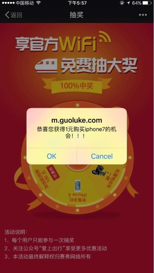 剛關(guān)注玩公眾號(hào)突然蹦出一個(gè)抽獎(jiǎng)頁(yè)面——