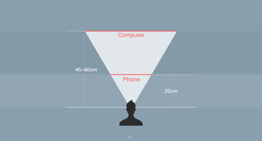 原因是我們在使用這兩種設(shè)備時的觀看距離不同,桌面端我們的眼睛離屏幕較遠,而在移動端則相反,因此我們應(yīng)該在移動端使用較小的字號反差。