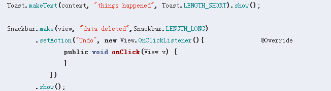 Toast 翻譯過(guò)來(lái)叫“吐司”,非常形象的一小片;Snackbar 則是“快餐店”,聽(tīng)起來(lái)就比吐司要牛逼一點(diǎn)。