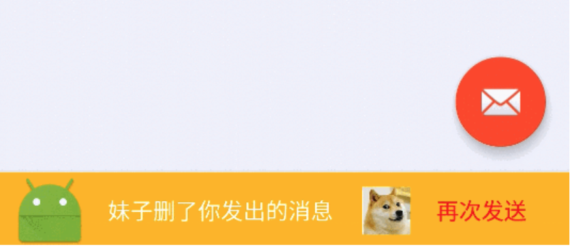 3. Snackbar 從屏幕底部向上移動(dòng)出現(xiàn)。